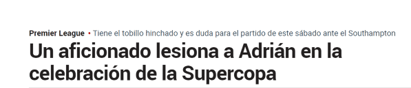 Cuando se preparaba para recibir el calor de los fanáticosredsen su primer partido como titular por el torneo local, se dio a conocer que el porterosufrió un traumatismo en el choque ante el Chelsea en Estambul.