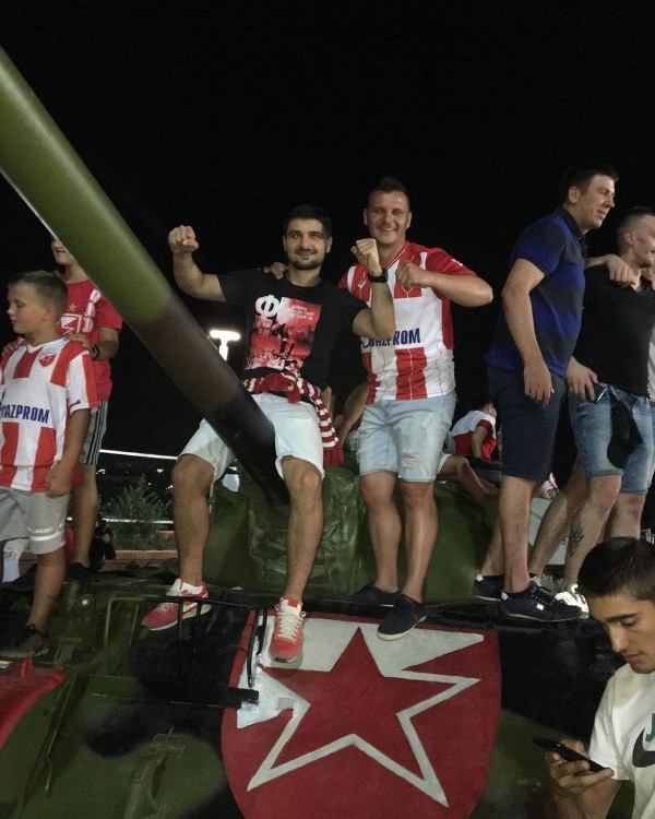 Los fanáticos del conjunto serbio se tomaron fotos junto al tanque e incluso festejaron la clasificación -tras empatar 1-1- subidos a él. No se descarta que el equipo reciba una sanción por parte de la UEFA.