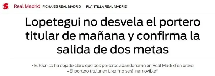 Según detalló Sport, Lopeteguiconfirmó en conferencia de prensa que la institución de España prescindirá de los servicios de dos arqueros para amenar la situación un poco.