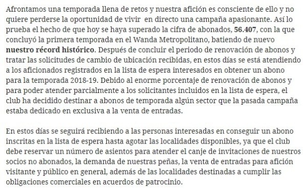 El año pasado fue su primer temporada en el Wanda Metropolitano y ya superaron el número de abonados de ese entonces. Son más de 56.047 personas.