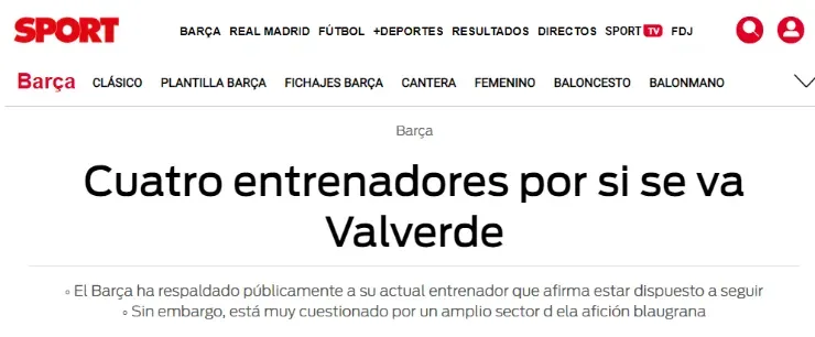 Pese a contar con el respaldo de la parte importante de la directiva, Sport señala que el entrenador Culé, que está al mando de la institución desde mediados del 2017, “es cuestionado por un amplio sector de la afición Blaugrana”.
