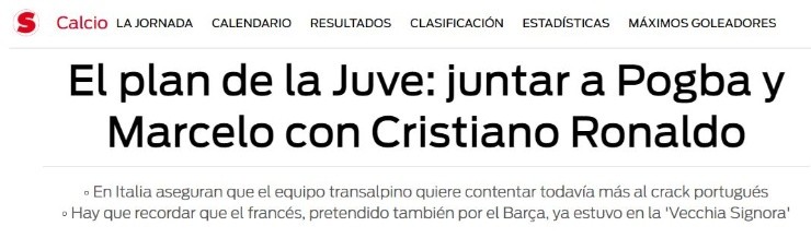 Por eso, Sport publicó un artículo detallando que La VecchiaSignoraharía un intento para contratar a dos figuras del fútbol.