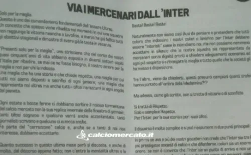 “Fuera los mercenarios de Inter. No se puede aceptar que un jugador un día decida que la camiseta no es suficiente para él y su ego”, exterioriza, entre otras cosas, el mencionado mensaje viralizado por Calcio Mercato.