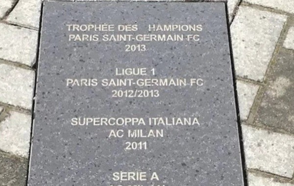 La estatua menciona los dos campeonatos con Juventus en 2005 y 2006 cuando los mismos fueron removidos luego de conocerse el escándalo de corrupción.