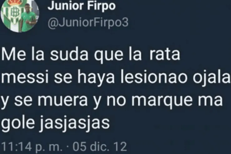 Sin embargo, como sucede en muchos casos, dos publicaciones viejas del jugador salieron a flote y generaron un gran revuelo (dado que insultaban y amenazaban a nada más ni nada menos que Lionel Messi). El lateral izquierdo tuvo que borrar ambas de su cuenta de Twitter.
