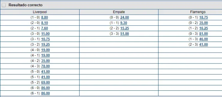 Además, juega las alternativas especiales que Marathonbet tiene preparado para ti, como por ejemplo conocer el resultado final del encuentro y el método en cómo se definirá al campeón del Mundial de Clubes entre Liverpool y Flamengo. ¿Qué esperas?