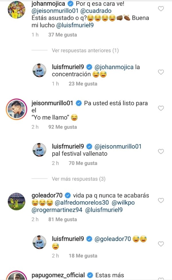 Otros de los que aparecieron con comentarios fueron sus compañeros de la Selección Colombia, Wilmar Barrios, Juan Guillermo Cuadrado, Johan Mojica, entre otros, quienes le pusieron divertidos comentarios en su video.