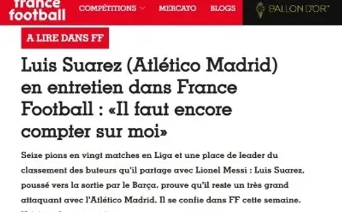 Metiéndose de lleno en su presente, Suárez dio a conocer el motivo principal de su llegada a la institución madrileña: “Me atraía jugar en el Atlético de Madrid, un club ambicioso.Después de todos estos años en el Barcelona, quería demostrar que todavía puedo ser útil al más alto nivel, dentro de la élite española”.