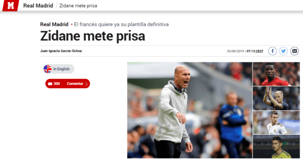 Así lo reseñó el Diario Marca, de España, el cual asegura:Otra salida que tanto el club como Zidane quieren que se produzca cuanto antes es la de James. El entrenador ha dejado claro a la entidad que no cuenta con él y por eso espera que se marche lo antes posible.
