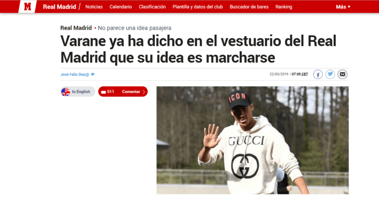 SegúnMarca,el defensor de 25 años ya le ha dicho al vestuario merengueque negociará su salida el próximo mercado de pases.
