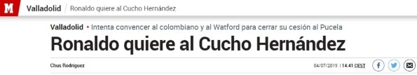 El ‘Cucho’ llegaría para pelear un puesto con el reciente refuerzo Sergi Guardiola y con Enes Unal, que todo indica también llegará pronto al club.