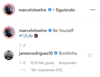 Uno de los que más lo disfruta es Marcelo, que hace unos días grabó una historia en su Instagram gritándole “Lindo” a James. Y ahora el colombiano le devolvió la atención y en una foto le comentó: “Bonitinho”.