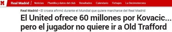 Pero el siempre oportuno Moruinho apareció y según cuenta Marca hizo que el Manchester United ofrezca 60 millones de euros por Kovacic. Pero ahora el jugador no acepta.