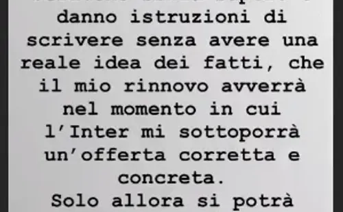 “Quiero aclarar a todos los fanáticos que leen pseudo periodistas y periódicos “serios”, que escriben sin saber o dan instrucciones para escribir sin tener una idea real de los hechos, que mi renovación tendrá lugar cuando el Inter me envíe una oferta correctay concreta.