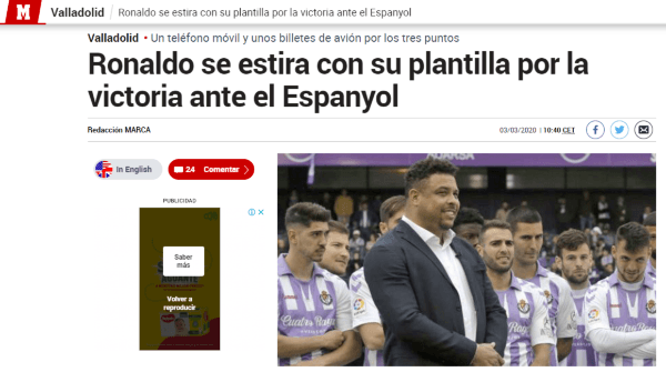 Sorprendió en su momento cuando Ronaldo Nazario se volvió el dueño y presidente de Valladolid, equipo que juega en la Primera División de España. El brasileño decidió volver a estar ligadoal fútbol, pero desde otro rol.