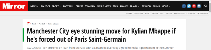 El prestigioso diario inglés argumaenta que, si el PSG no logra cumplir con los requisitos exigidos por la FIFA en cuanto al llamadoFair Play financiero,el club inglés ofertaría 150 millones de libras por el jugador de 19 añosque aún pertenece al Mónaco.