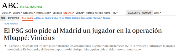 Sin embargo, la situación económica del club blanco no es la ideal, y los 225 millones pueden ser una cifra muy difícil de alcanzar, y el PSG lo sabe. Por eso, según informó el diario ABC, Leonardo le haría una interesante propuesta al presidente del Real Madrid, que sería la inclusión de un futbolista en la negociación para “alivianar costos”.