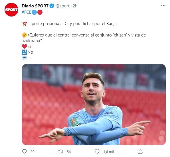 Valorado en 45 millones de euros según Transfermarkt, Laporte ya sabría que desde Barcelona no van a pagar la suma que pida Manchester City, por lo que desea ser incluido en un trueque o salir a modo de cesión con opción de compra obligatoria. En Sport citan que el salario del francés nacionalizado español para jugar la Eurocopa de Naciones, no sería un problema.