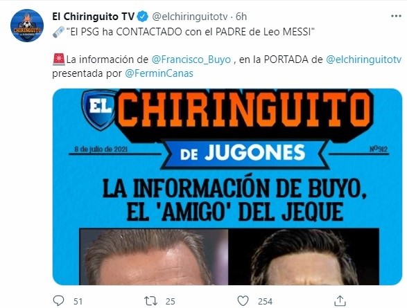 “Hace unos días alguien en PSG (no es nadie relacionado con el entorno de Neymar), ha llamado y hablando con el padre de Messi. Sus palabras fueron que si Barcelona no soluciona sus problemas económicos y no puede llegar a ofrecer un contrato que satisfaga a Lionel, acá estamos. Cuando quieres hablamos de la situación de Messi. Acá estamos listos”, decía el ex portero y tertuliano del Chiringuito Paco Buyo sobre una conversación entre el padre del rosarino y un prestigioso agente del club francés.