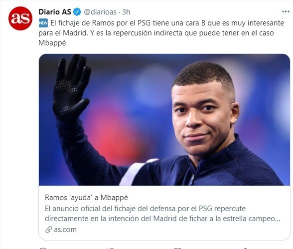 El zaguero de 35 años fue claro: “Vine a ganar todo”. Ramos sabe que en Madrid seguirán muy de cerca su actuación con el equipo de la capital francesa, donde todo lo que no sea ganar la Champions está visto prácticamente cómo un fracaso. Si bien en AS marcan que las relaciones entre clubes son buenas, en Real Madrid todavía no saben que le aconsejará el mítico número 4 a Kylian Mbappé Lottin.