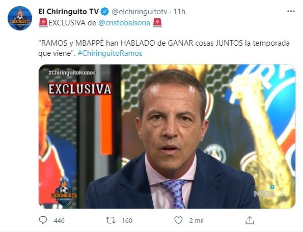 Por otro lado, desde el Chiringuito de Jugones el tertuliano Cristóbal Soria asegura que Sergio Ramos y el delantero ya se han contactado: “Ya se comunicado con todos sus compañero, incluido Mbappé, quien le ha dado la bienvenida. Han hablado de ganar cosas juntos el próximo año, cosas grandes”.