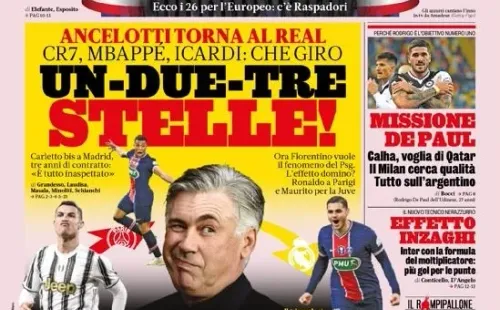 La Gazzetta dello Sport arrancaba su mañana con una portada marcada por el cambios de cromos que puede venirse entre Real Madrid, PSG y Juventus de Turín. El medio transalpino asegura que con el arribo de Ancelotti, Mbappé tendría la seguridad de encontrarse con un entrenador del mismo calibre de Zidane en cuanto a cuestiones humanas se refiere. La salida del francés y el nombre de Antonio Conte como su reemplazante, había frenado de alguna manera la operación.