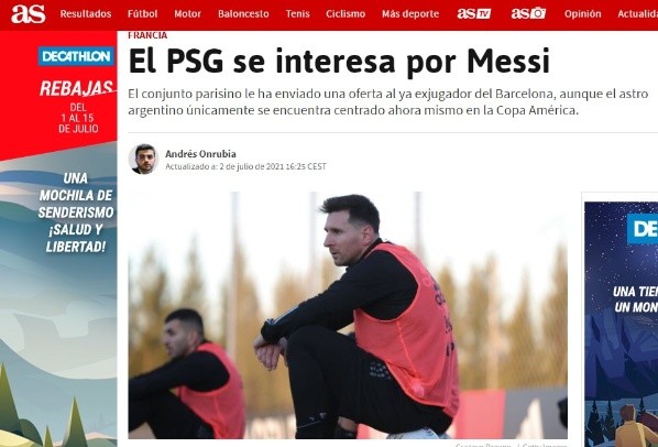 Diario AS y Andrés Onrubia avisaron minutos atrás sobre el primer ofrecimiento al agente libre Lionel Messi. Uno de un viejo conocido que viene siendo el mayor protagonista del mercado y que seguirá luchando nuevamente por quedarse con la UEFA Champions League. Paris Saint Germaín según el medio, ha mandado al argentino una propuesta para que deje España en los próximos días.