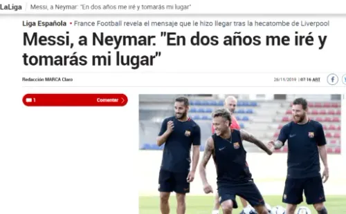 Sorpresivas las conversaciones entre Lionel Messi y Neymar que reveló France Football. El medio francés filtró la charla que tuvieron las astros, después de la caída del Barcelona contra el Liverpool por 4 a 0.