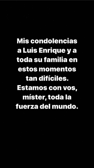 “Mis condolencias a Luis Enrique y a toda su familia en estos momentos tan difíciles. Estamos con vos, míster, toda la fuerza del mundo“, escribió el Diez y capitán del Barcelona.