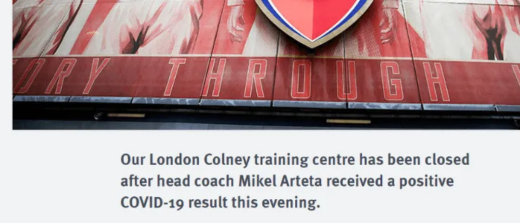 “Nuestro centro de entrenamiento de London Colney se cerró después de que el entrenador en jefe Mikel Arteta recibió un resultado positivo de COVID-19 esta noche“, dice el comunicado.