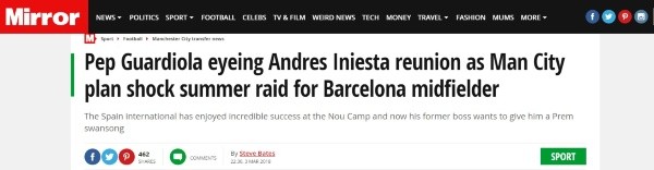 Guardiolahará todo lo posible para llevarse a Iniesta al equipo de Manchester, según publica el sitio inglés, después de haber dirigido al mediocampista entre las temporadas 2008 y 2012 en el Barcelona.