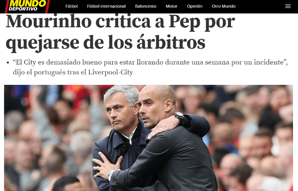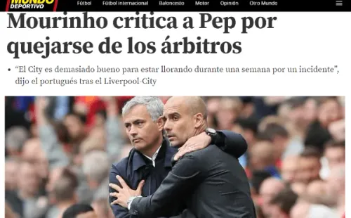 Al respecto, José Mourinho habló y le pegó un palito a Pep:“El City es demasiado bueno como para estar llorando durante una semana por un incidente”.