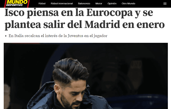 Uno de esos es Isco Alarcón, el volante ve con buenos ojos emigrar del Merengue debido a que cada vez cuenta con menos minutos en cancha.