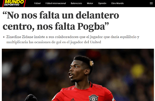 Pese a que la dirigencia del Merengue tiene la cabeza puesta en la delantera y la falta de gol que sufren, el francés está obsesionado por un volante. Paul Pogba es el nombre del jugador que ansía el entrenador.