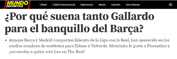 En estos dos motivos se basan principalmente en Mundo Deportivo para entender el por qué de la posible llegada de Gallardo a Barcelona.