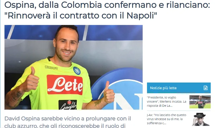 “En las últimas horas, al equipo editorial de Area Napolile contaron cómo el entorno de David Ospina le pidió a la dirgencia que renovara el contrato por unas temporadas más.Las negociaciones para una extensión estarían muy avanzadas”.