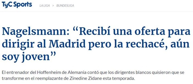 El actual entrenador del Hoffenheim de Alemania reveló algo que dejó atónito a más de uno al comentar que recibió la oferta de dirigir al Real Madrid y la rechazó: “Todavía soy joven, ya habrá otra oportunidad”.