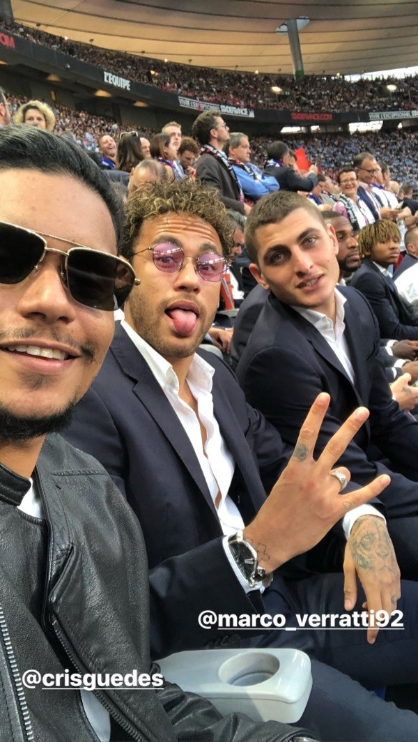 El delantero brasilero volvió a París tras dos meses de recuperación en su Brasil natal para presenciar en vivo y en directo la final de la Copa de Francia.