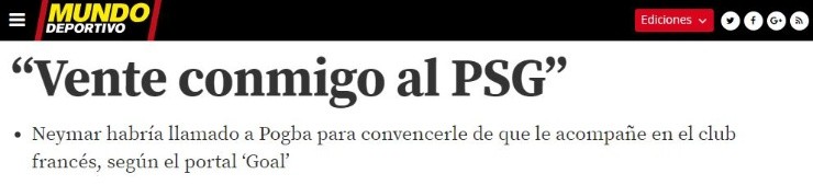 Es que aparentemente Neymar, hombre del PSG, se comunicó con Pogbapara ofrecerle retornar a su país de origen y jugar junto a él en el titán de Francia.
