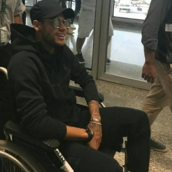 A Neymar se lo pudo ver en silla de ruedas en su llegada al aeropuerto y el mundo del fútbol está pendiente del resultado de la operación de la estrella de Brasil.