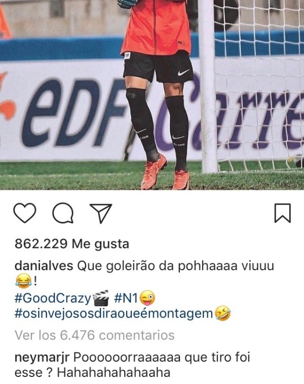 Ante esta comparación de Dani Alves, Neymarse río y dijo: “Qué arquero increíble, ¿vieron?”, a lo que el defensor respondió: “Es lo que hay, más respeto, Ney”.