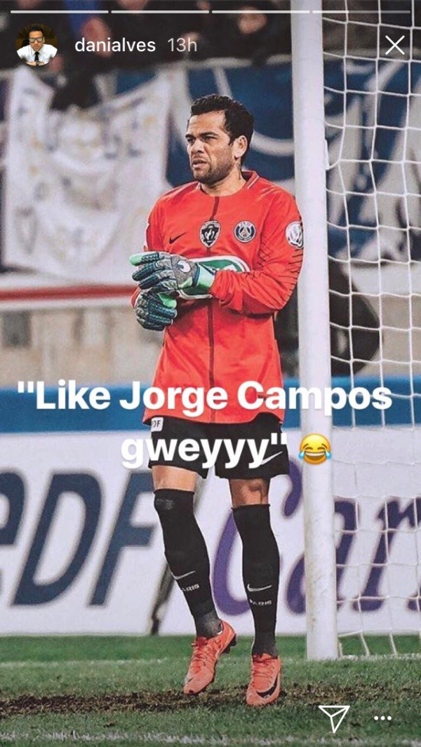 Ney estuvo afuera del partido con licencia, después de su gran fiesta de cumpleaños en París, pero no dejó pasar la imagen de Alves, especialmente su historia de Instagramdonde se comparó con Jorge Campos, el histórico arquero de la Selección de México, de Pumas y Cruz Azul.