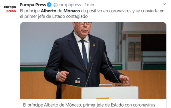 Se trata del primer Jefe de Estado, ya que es él la máxima autoridad del Principado, que contrajo el COVID-19.