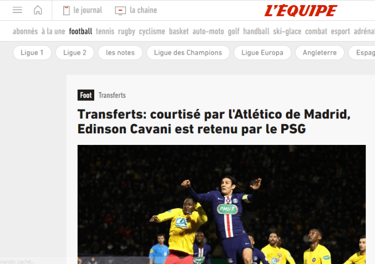 Aunque distintos portales europeos indicaron que Cavani había llegado hace un tiempo a un principio de acuerdo para pasar a vestir la camiseta del Atlético Madrid,L’Equipe reportó que desde la cúpula dirigencial del PSG le bajaron el pulgar al artillero.
