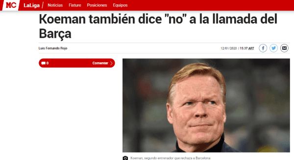 El apuntado era Ronald Koeman, actual entrenador de la selección holandesa. El DT jugó en el Barca y dejó un gran recuerdo vistiendo la azulgrana. Hace rato está en carpeta y tiene una cláusula para irse al Barcelona, después de la Eurocopa 2020.