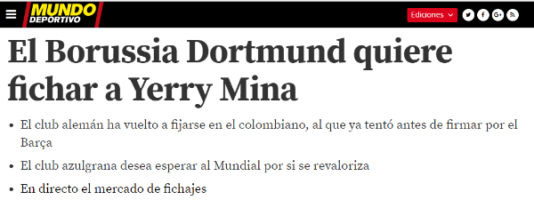Según publicó hoy Mundo Deportivo, el Borussia Dortmund estaría interesado en contratar los servicios del defensor. No es una negociación fácil, pero lo tienen en carpeta.