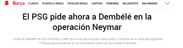 La idea sería que le den a Coutinho, Dembele y 100 millones de euros para largar a Neymar.