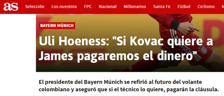 Para cerrar, dejando las cosas bien en claro, Hoeness resumió la situación y culminó: “Si él nos dice que cuenta con James para la próxima temporada, abonaremos la cantidad”.