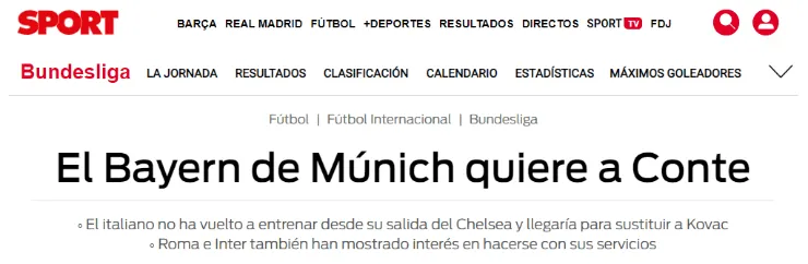 Según señaló Sport, el Bayern estaría evaluando la chance de contratar a Antonio Conte una vez finalice la temporada para que justamente ocupe el cargo de Kovac.