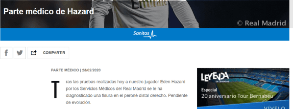 También el Barcelona lo superó en la tabla de La Liga y como si fuera poco, Eden Hazard salió lesionado a los casi 70 minutos de juego.